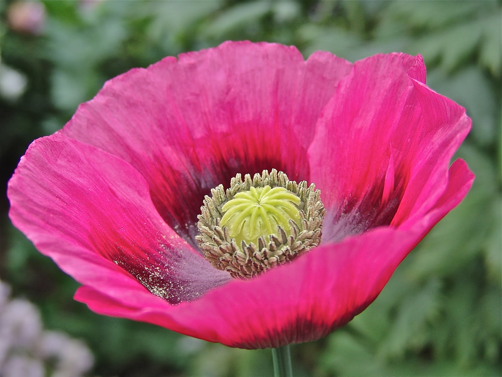 Also known as the bread seed poppy, most single-petalled Papaver somniferum grow in various shades of purple, pink and white. These poppies are sometimes referred to as blue bread seed poppies. This is not because the flower is blue, but because the seeds, when mature, are shades of blue.